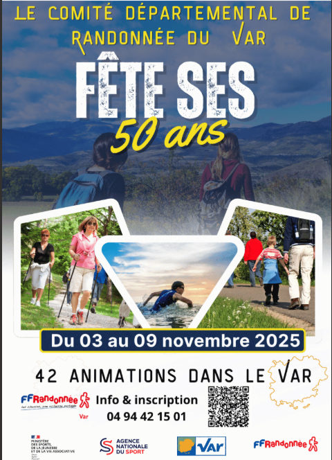 Manifestations 13/02/2025 par cpalanque LES 50 ANS DU CDRP83 Le Comité Départemental de la Randonnée Pédestre du Var fêtera ses 50 ans cette année En savoir plus