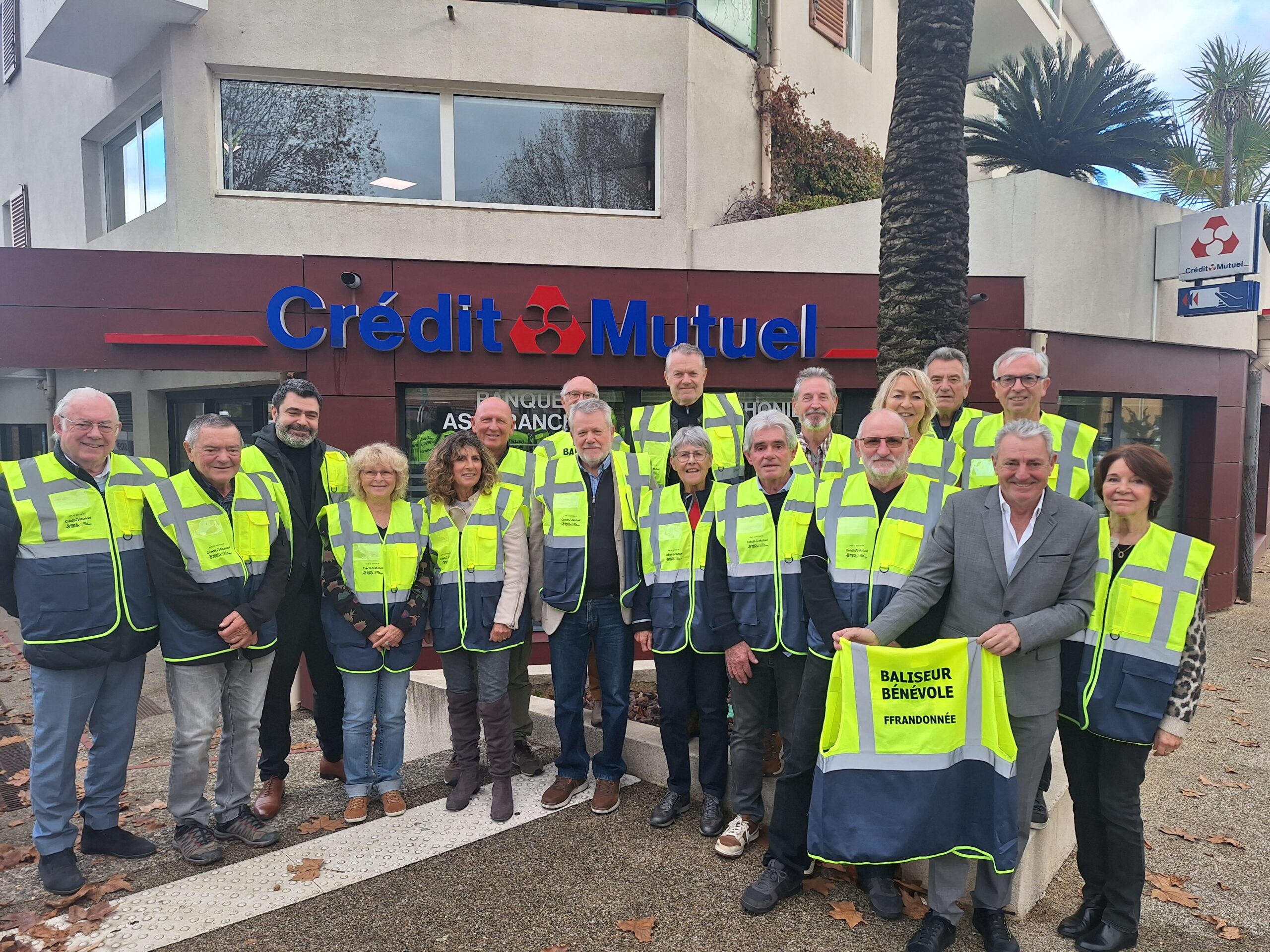Ce jeudi 18 décembre, la délégation régionale du Crédit Mutuel Méditerranée – présidée par Thierry Aimar et dirigée par Brice Motechic – a accueilli les membres du comité départemental du Var de la Fédération Française de Randonnée Pédestre présidé par Marc Perez pour leur remettre 190 gilets de balisage pour les bénévoles.